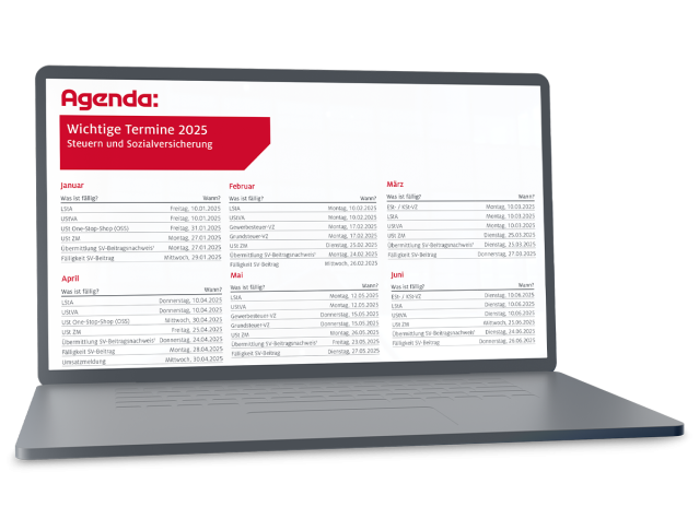 Mit unserem Fristenkalender haben Sie alle wichtigen Steuer- und Sozialversicherungstermine im Blick.