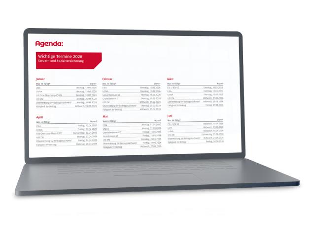 Mit unserem Fristenkalender haben Sie alle wichtigen Steuer- und Sozialversicherungstermine im Blick.